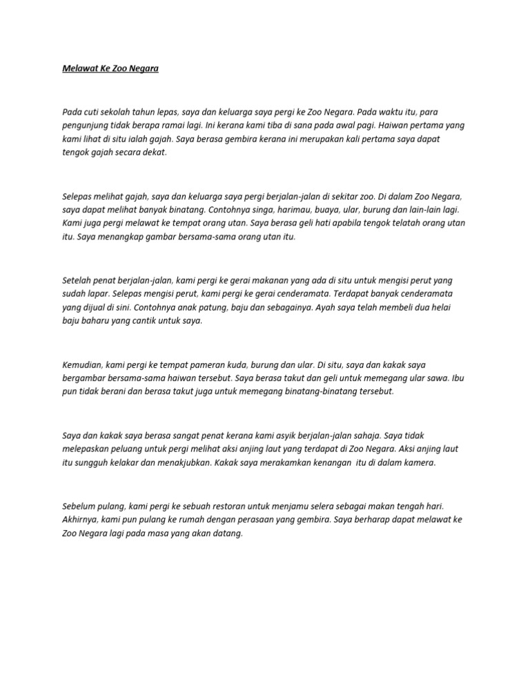 Karangan Laporan Ringkas Lawatan Ke Zoo Negara Karangan Contoh Cikgugoh